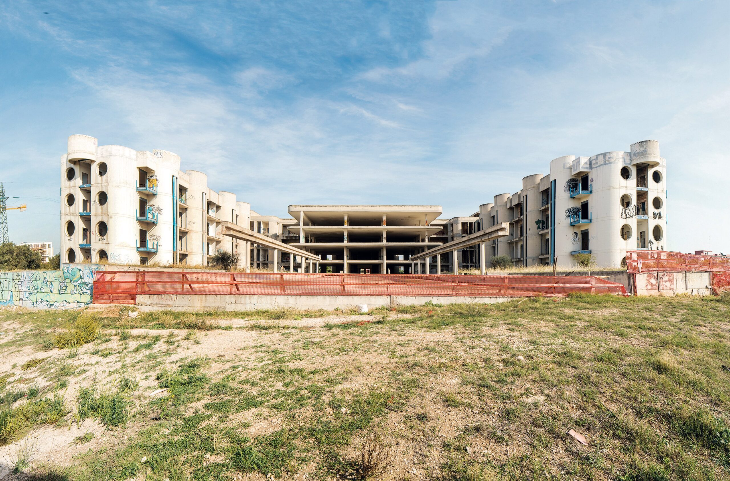 Che simili risonanze sorgano da una “semplice” operazione di ricontestualizzazione di un fenomeno di criminalità e burocrazia, capace di annichilire persino quel poco di artistico che dovrebbe avere l’architettura, ha dell’incredibile. Il tutto è nato da una casualità: il gruppo era in vacanza in Sicilia quando un amico li ha portati a mangiare un arancino nello stadio da polo incompiuto di Giarre. “E quando gli abbiamo detto ‘cazzo è sta roba’, ci ha detto ‘ce ne sono altre sette qua attorno’”, racconta Masu.