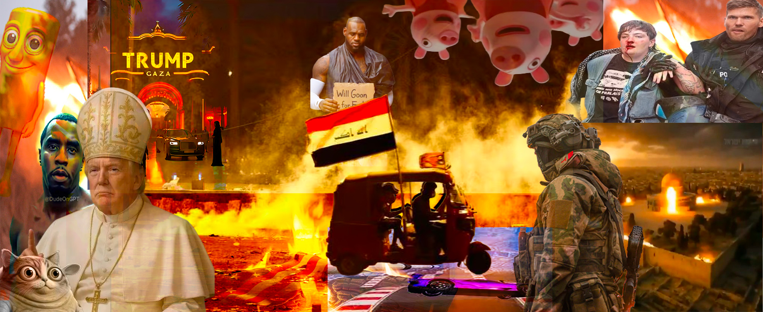 Le immagini di qualcosa che ancora non esiste e non esisterà mai ma non ha più importanza se siano vere o no. Trump Riviera, Al Aqsa che brucia per fare posto a un inesistente Terzo Tempio… La generazione artificiale di una violenza estetizzata, intangibile ma convincente.