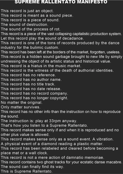 Questa peculiarità in qualche modo accomuna (o dovrebbe accomunare) chiunque metta al centro del proprio operare musicalmente il djing, vale a dire la selezione prima ancora della produzione in senso stretto: esercitare una scelta significativa nell’oceano dei suoni perpetuamente prodotti, ritagliare un percorso significativo nell’archivio e nel metarchivio infiniti, richiede infatti una forte tempra estetica. E di certo non è quella che manca a Hugo Sanchez, una tempra incarnata nella poetica del Supreme rallentato, la definizione di un “groove” sensualmente apocalittico, una tecnica di hackeraggio del suono attraverso la decelerazione e una forma di seconda creazione gravida di conseguenze fisiologiche e teoriche.